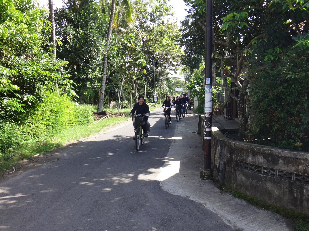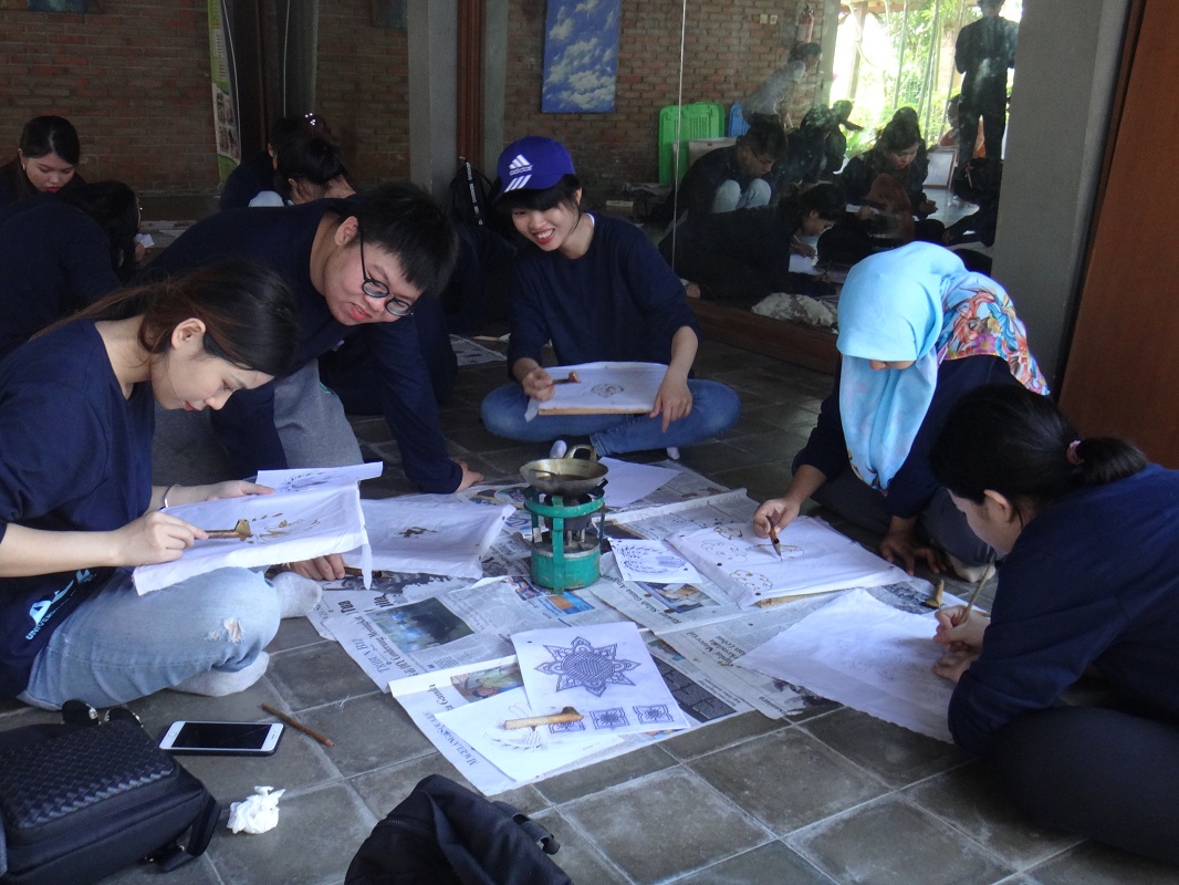 Around 20 students of BIPA 2019 class and 8 teachers and staff of ADLC joined the outing class at Rumah Budaya Tembi on Sunday, 7 April 2019. The outing started early at 8 in the morning. At first, the students rode bicycle around some nearby villages. Afterwards, they went to a local traditional market and made traditional snack called Carang Gesing. In the afternoon, they learnt how to make batik handkerchief. There were some guides speaking in Bahasa Indonesia assisting the class. During the outing, the students had more exposure on the use of Indonesian language. They also managed to speak to the food sellers at the market as well as the staff of Rumah Budaya Tembi. They learnt to practice the language they learnt in the classroom while having some fun.