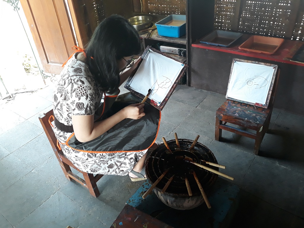 The outing class for BIPA Mandiri class was done on Sunday, 28 April 2019 at Taman Pintar Yogyakarta. The class was started at 9 am in the morning and ended at 1 pm. Shia, a student of B1 Level spent a day making batik handkerchief, painting t-shirt, and making handmade pottery. Each activity needed around an hour to finish. To end the class, the student and the teacher had lunch at one of Yogyakarta’s most famous Javanese restaurant, the House of Raminten. Other than learning how to make several handcrafts, the student also had the chance to taste well-known Indonesian dishes, i,.e. nasi goreng, mendoan, and es carica.