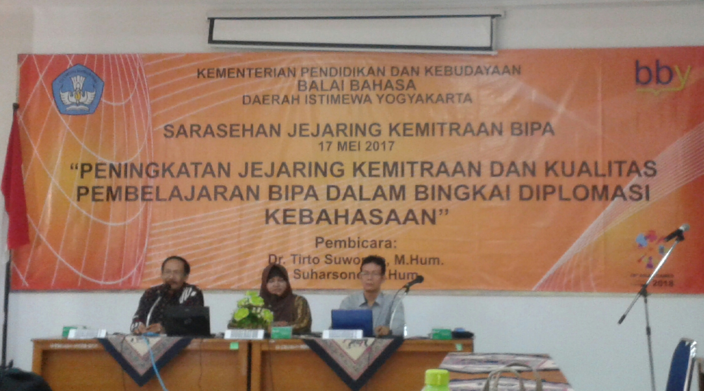 A seminar on BIPA Partnership was conducted on Wednesday, 17 May 2017 by Balai Bahasa Yogyakarta. The talks were given by Dr. Tirto Suwondo, M.Hum and Drs. Suharsono, M.Hum. They shared some issues on BIPA materials and managements as well as future partnership among BIPA institutions with Balai Bahasa Yogyakarta. The attendees were BIPA teachers and BIPA institution management staffs working in Yogyakarta. ADLC staff and teacher also joined this seminar.